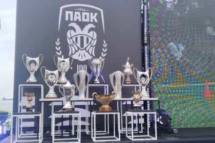 Ξεχωριστή λάμψη αποκτά η γιορτή για τα 100 χρόνια του ΠΑΟΚ στην Πλατεία Αριστοτέλους, όπου δεσπόζουν τα ιστορικά τρόπαια του ποδοσφαιρικού τμήματος, προσελκύοντας το ενδιαφέρον χιλιάδων φιλάθλων. Σε ειδικά διαμορφωμένο…