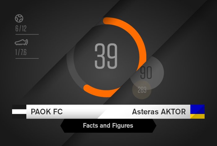 228 αγωνιστικά λεπτά ήταν η απόσταση από το γκολ του Μίροσλαβ Στοχ στις 30 Απριλίου 2014 και του Δημήτρη Πέλκα στις 27 Φεβρουαρίου 2016. Ανάμεσα τους δεν είχε σημειωθεί γκολ σε αναμέτρηση του ΠΑΟΚ με τον Αστέρα Τρίπολης στην Τούμπα, αφού τα ματς της σεζόν 2014-15 για την κανονική διάρκεια του πρωταθλήματος, όσο και αυτό για τα Play Offs τελείωσαν με λευκές ισοπαλίες. Αυτές οι δύο αναμετρήσεις, καθώς και εκείνη στην Τρίπολη στις 11 Σεπτεμβρίου 2009 είναι οι μοναδικές που έχουν τελειώσει χωρίς να σημειωθεί γκολ ανάμεσα στις δύο ομάδες.