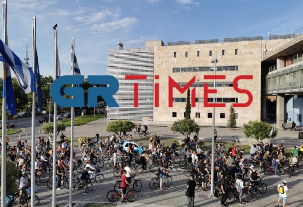 Η ποδηλατοπορεία που ξεκίνησε από το Λευκό Πύργο έφτασε στο Δημαρχιακό Μέγαρο Θεσσαλονίκης όπου αναμένεται να επιδοθεί το ψήφισμα προς το Δήμαρχο Θεσσαλονίκης.
