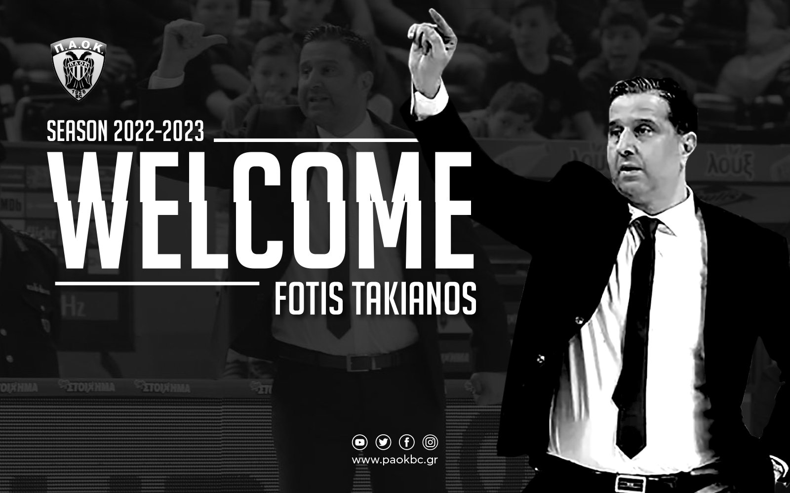 Η ΚΑΕ ΠΑΟΚ mateco ανακοινώνει τη συμφωνία με τον προπονητή Φώτη Τακιανό, ο οποίος αναλαμβάνει την τεχνική ηγεσία της ομάδας μας ως το τέλος της σεζόν 2023-24. Καλωσορίζουμε τον κορυφαίο προπονητή της περσινής σεζόν στη Basket League στη μεγάλη οικογένεια του ΠΑΟΚ.