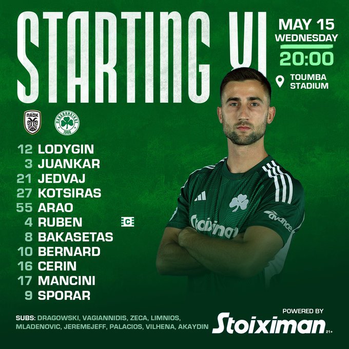 Πριν από λίγο έγινε γνωστή η ενδεκάδα που επέλεξε ο τεχνικός του Παναθηναϊκού, Φατίχ Τερίμ για το παιχνίδι κόντρα στον ΠΑΟΚ στο γήπεδο της Τούμπας.