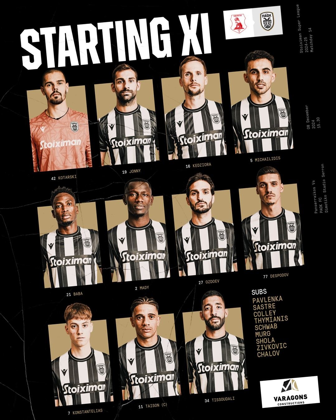 Πριν από λίγο έγινε γνωστή η ενδεκάδα που επέλεξε ο τεχνικός του ΠΑΟΚ, Ραζβάν Λουτσέσκου για τον εκτός αγώνα κόντρα στον Πανσερραϊκό.