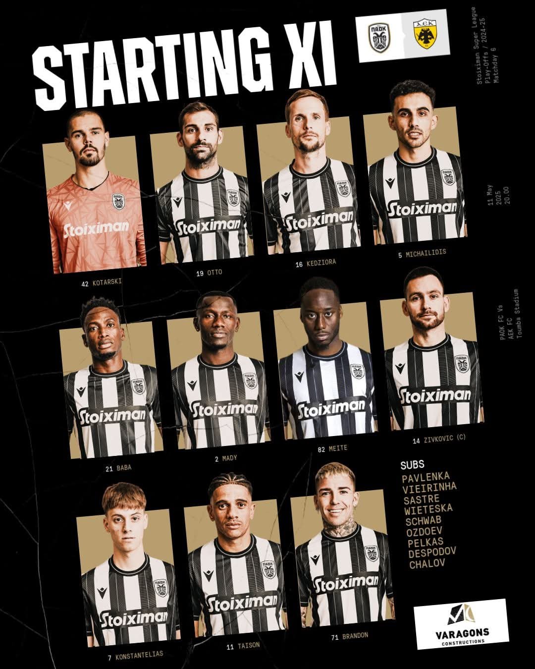 Πριν λίγο έγινε γνωστή η ενδεκάδα που επέλεξε ο τεχνικός του ΠΑΟΚ, Ραζβαν Λουτσέσκου για τον τελευταίο αγώνα της σεζόν που θα κρίνει την τρίτη θέση στον βαθμολογικό πίνακα του πρωταθλήματος.
