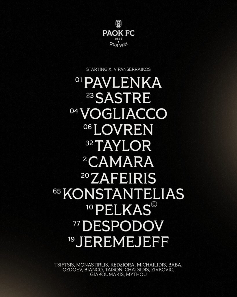 Πριν από λίγο έγινε γνωστή η ενδεκάδα που επέλεξε ο τεχνικός του ΠΑΟΚ, Ραζβάν Λουτσέσκου για τον έντος έδρας αγώνα στην Τούμπα για τον αγώνα με τον Πανσεραϊκό.