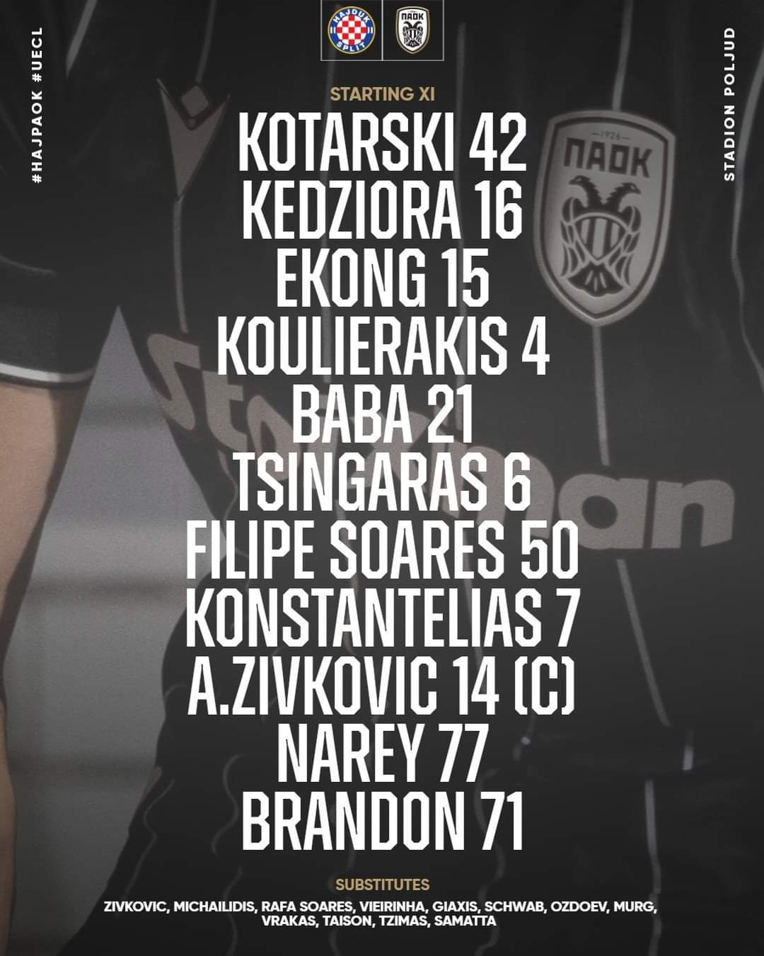 Πριν από λίγο έγινε γνωστή η ενδεκάδα του ΠΑΟΚ για τον αγώνα με την Χάιντουκ για πρώτη αναμέτρηση 3ος προκριματικου  conference league.