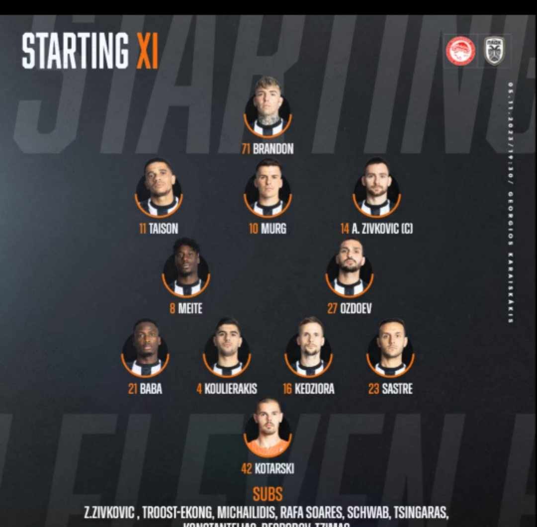 Αυτή είναι η ενδεκάδα του ΠΑΟΚ στο “Γ.Καραϊσκάκη”