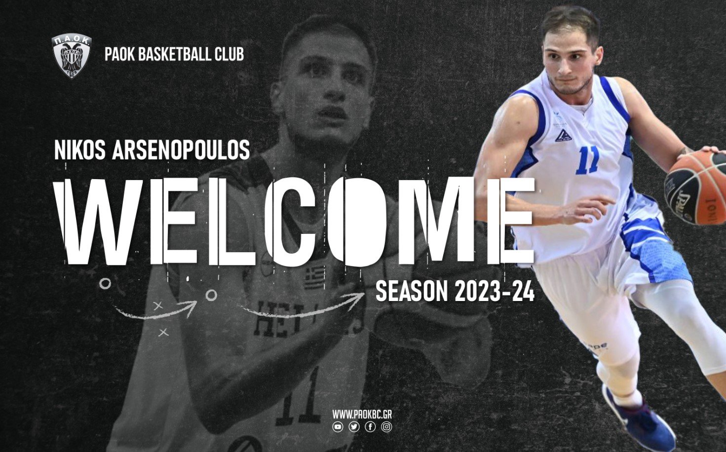 Η ΚΑΕ ΠΑΟΚ mateco ανακοινώνει τη συμφωνία με τον Νίκο Αρσενόπουλο, ο οποίος θα αγωνιστεί στην ομάδα μας τη σεζόν 2023-24. Καλωσορίζουμε στη μεγάλη οικογένεια του ΠΑΟΚ έναν από τους πιο αξιόλογους αθλητές της νέας γενιάς του Ελληνικού μπάσκετ.