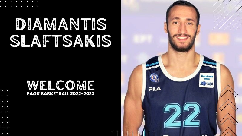 Η ΚΑΕ ΠΑΟΚ mateco ανακοινώνει τη συμφωνία με τον 28χρονο φόργουορντ Διαμαντή Σλαφτσάκη, ο οποίος θα αγωνιστεί στην ομάδα μας την αγωνιστική περίοδ0 2022-2023. Καλωσορίζουμε το Διαμαντή στη μεγάλη οικογένεια του ΠΑΟΚ.