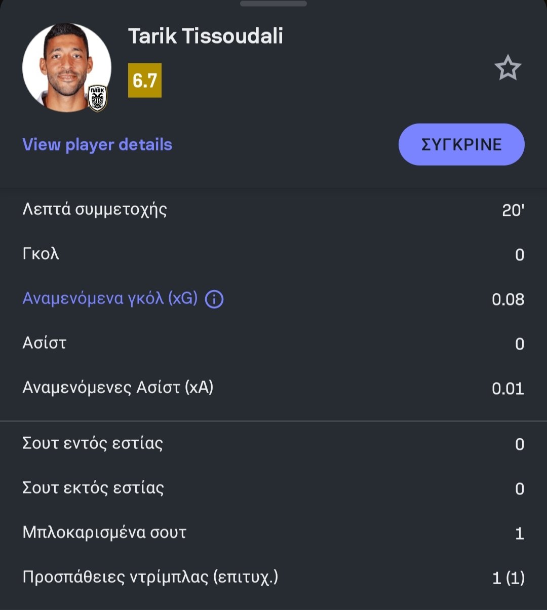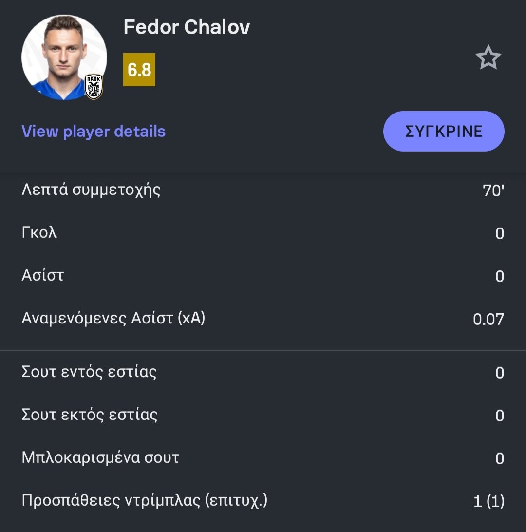 Παρά τις 27 τελικές προσπάθειες που κατέγραψε η ομάδα, οι επιθετικοί Τσάλοφ και Τισουντάλι δεν κατάφεραν να καταγράψουν ούτε μία τελική προσπάθεια σε έναν αγώνα που οι πρωταθλητές Ελλάδος είχα κλείσει την αντίπαλο τους στην περιοχής της.