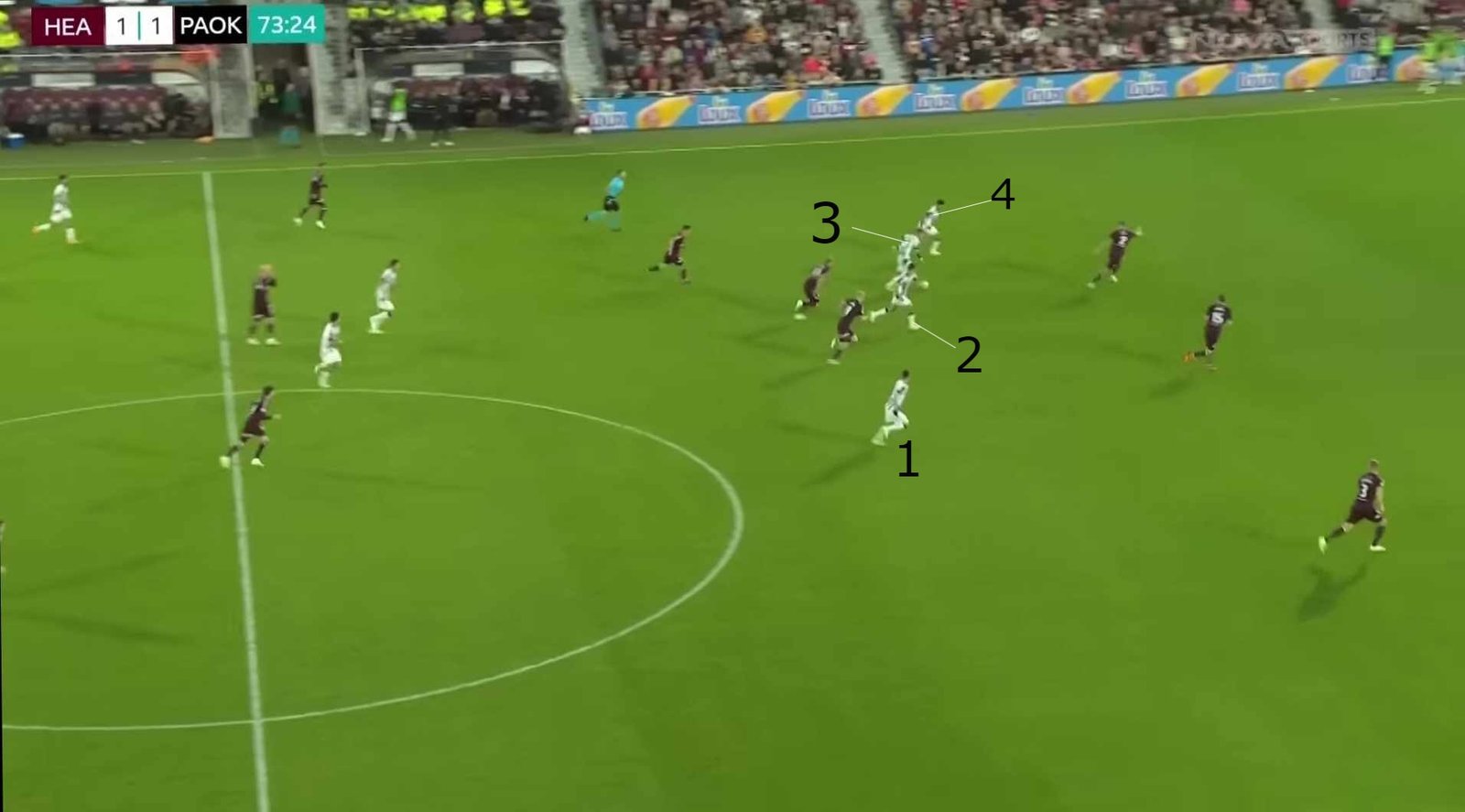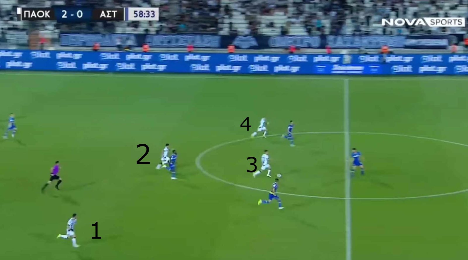 Η παραπάνω φωτογραφία είναι από το παιχνίδι πρωταθλήματος κόντρα στον Αστέρα Τρίπολης που δείχνει πως ο ΠΑΟΚ βρίσκεται σε ετοιμότητα και σε περίπτωση που πάρει την κατοχή της μπάλας και πρέπει να πάει σε επιθετική μετάβαση έχουν ενεργοποιηθεί τέσσερις ποδοσφαιριστές προκειμένου να βγούνε στην επίθεση.
