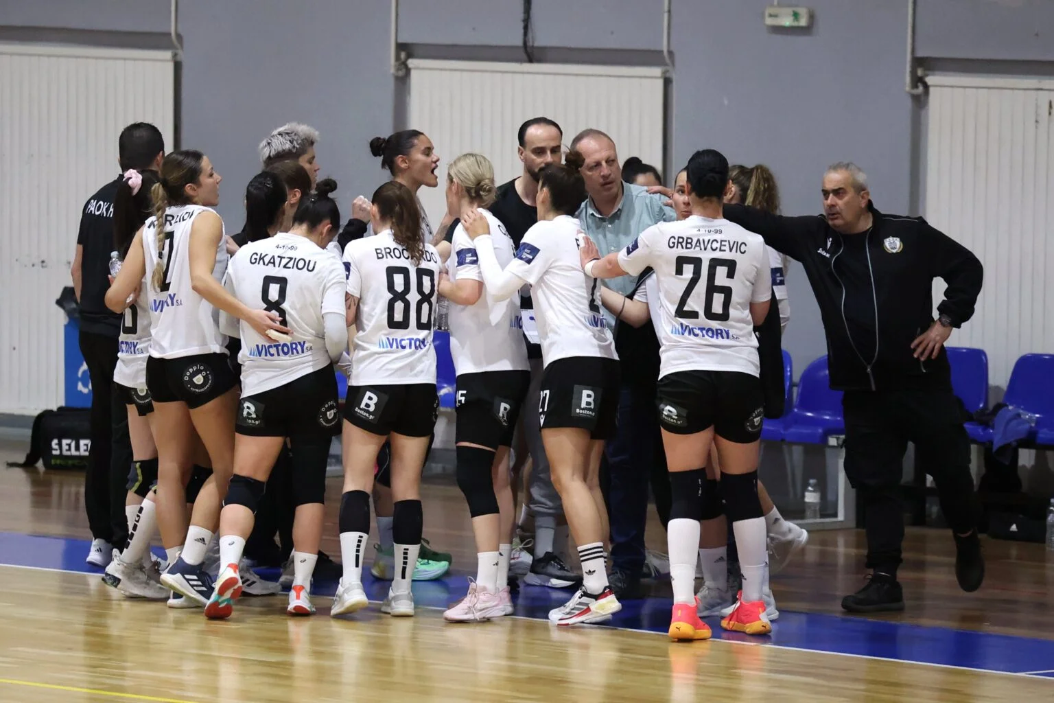 Οι «ασπρόμαυρες» είχαν τον έλεγχο της αναμέτρησης από τα πρώτα λεπτά, διατηρώντας υψηλό ρυθμό τόσο στο οργανωμένο παιχνίδι όσο και στο ανοιχτό γήπεδο. Ο Δημήτρης Πελεκίδης προχώρησε σε εκτεταμένο ροτέισον, δίνοντας χρόνο συμμετοχής σε όλες τις αθλήτριες και διατηρώντας φρεσκάδα στην απόδοση της ομάδας σε όλη τη διάρκεια του αγώνα.
