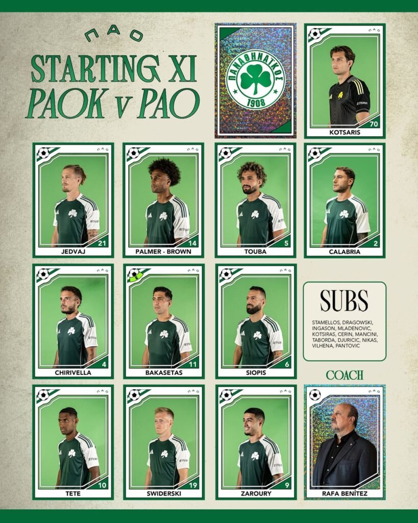 Πριν από λίγο έγινε γνωστή η ενδεκάδα που επέλεξε ο τεχνικός του Παναθηναϊκού, Ράφα Μπενίτεθ για τον εκτός έδρας αγώνα στην Τούμπα.