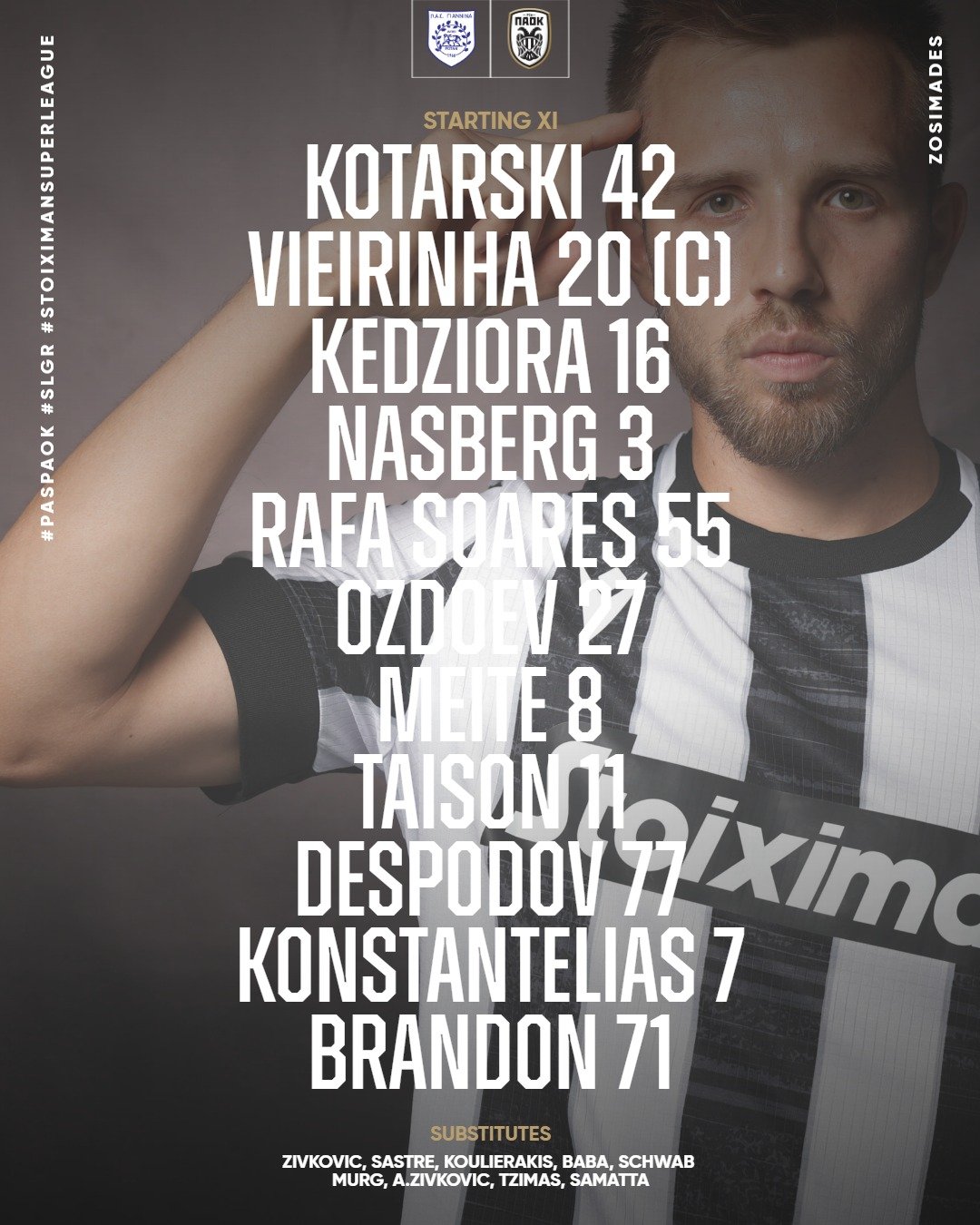 Πριν από λίγο έγινε γνωστή η ενδεκάδα που επέλεξε ο τεχνικός του ΠΑΟΚ, Ραζβάν Λουτσέσκου για τον αγώνα με τον ΠΑΣ Γιάννια στο πλαίσιο της 5ης αγωνιστικής του πρωταθλήματος της Super League.
