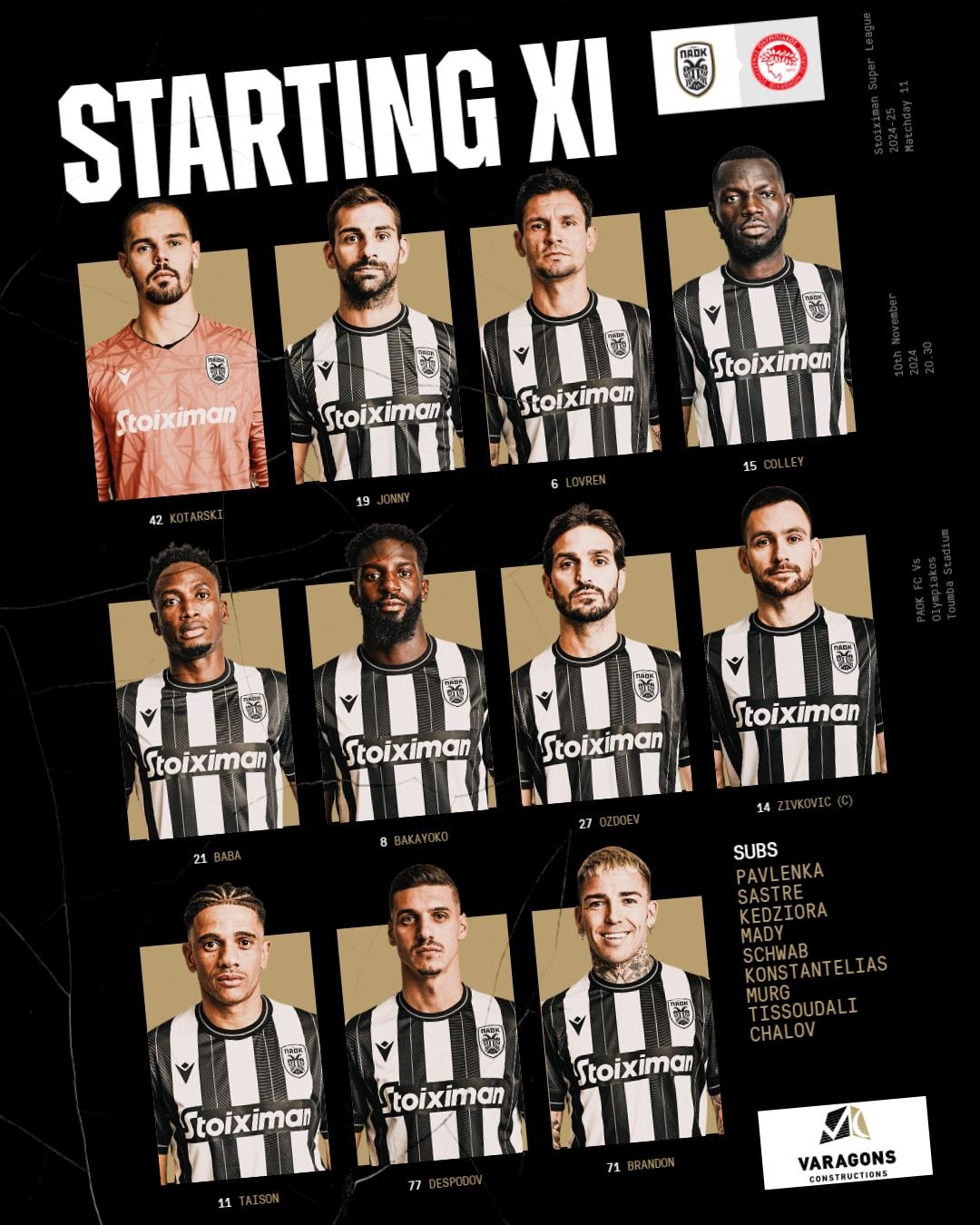 Aυτή είναι η ενδεκάδα του ΠΑΟΚ