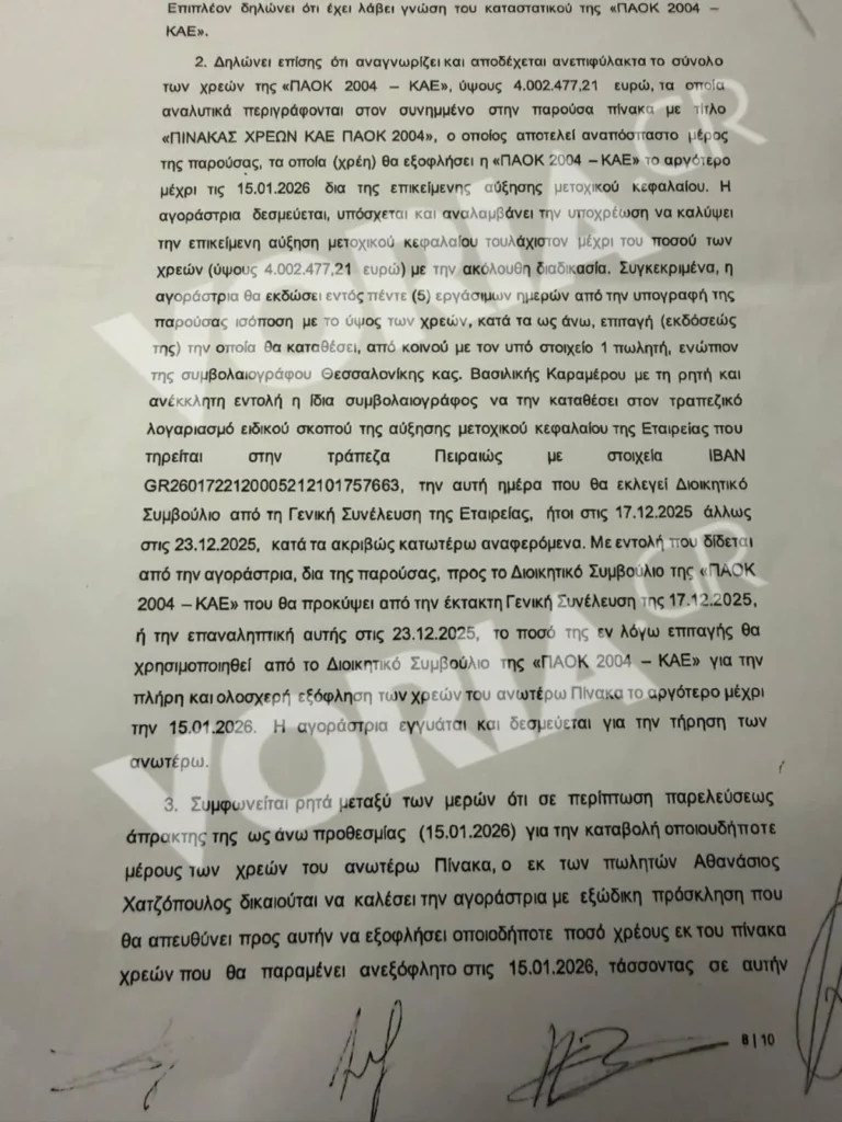 Aυτή είναι η σύμβαση εξαγοράς της ΚΑΕ ΠΑΟΚ από τον Μυστακίδη (pics)
