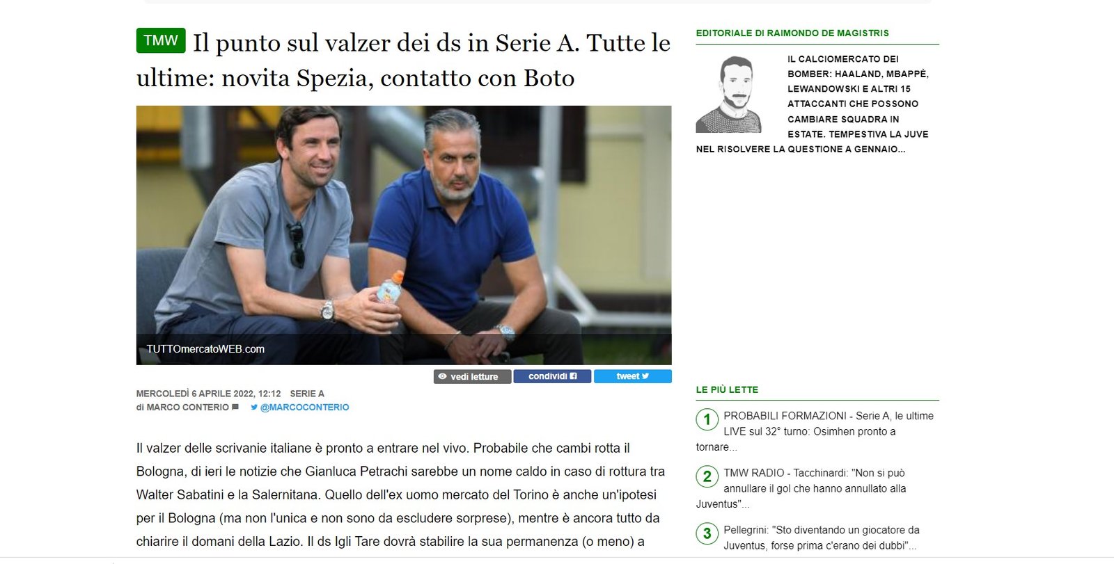 Συγκεκριμένα η Ιταλική ιστοσελιδα tuttomercatoweb.com αναφέρει τα εξής: “H έκπληξη έρχεται από τη Λα Σπέτσια. Διοίκηση, ομάδα και προσωπικό είναι απόλυτα επικεντρωμένοι στον αγώνα για σωτηρία και στους χαμένους βαθμούς για την επιβεβαίωση μιας θέσης στην κορυφαία κατηγορία, αλλά οι ιδιοκτήτες σκέφτονται ήδη την επόμενη σεζόν. Δεν αποκλείεται όλα να συνεχίσουν έτσι (ή να επεκταθεί το σχέδιο, δεδομένων των φημών για πιθανή εξαγορά της Vitesse στην Ολλανδία), αλλά στο μεταξύ η αμερικανική ιδιοκτησία είχε επαφή με τον José Boto. Άνθρωπος της αγοράς που τους τελευταίους μήνες εργάζεται στον ΠΑΟΚ στην Ελλάδα, ήταν αρχισκάουτερ της Μπενφίκα (και ανακάλυψε πολλά ταλέντα των Αετών) και μετά deus ex machina του έργου της Σαχτάρ Ντόνετσκ, που έφερε τους καλύτερους πρωταθλητές Βραζιλίας στην Ουκρανία και όχι μόνο. Από την πλευρά του Ιταλικού συλλόγου ήρθε σε επαφή με τον Ζοσέ Μπότο, ο Αντονέλο Πρέιτι”.