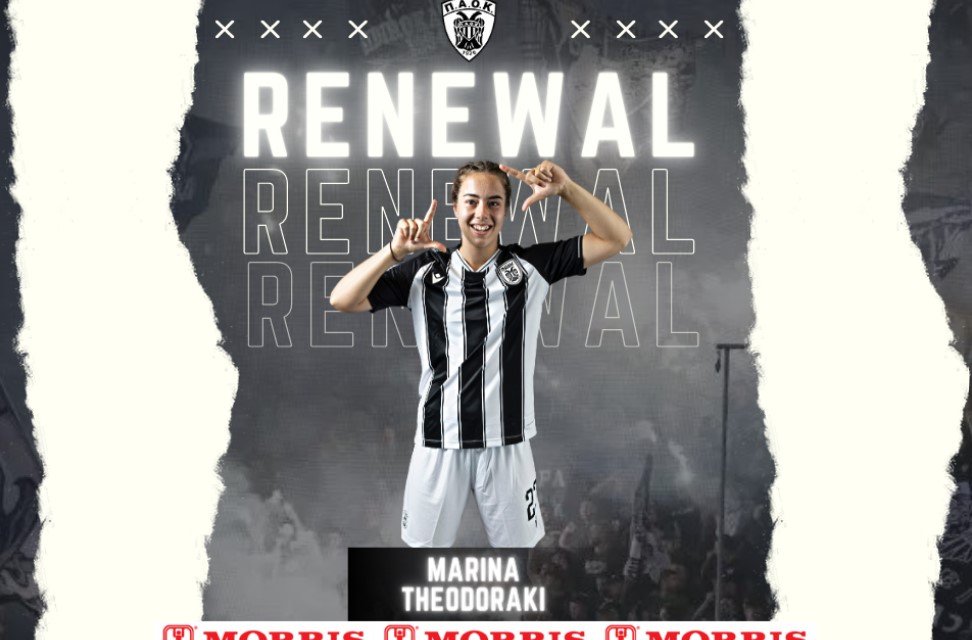 Ο ΠΑΟΚ, και το τμήμα Ποδοσφαίρου γυναικών, ΠΑΟΚ Morris, ανακοινώνουν την ανανέωση συνεργασίας με την αθλήτρια, Μαρίνα Θεοδωράκη, για την αγωνιστική περίοδο 2023-2024.
