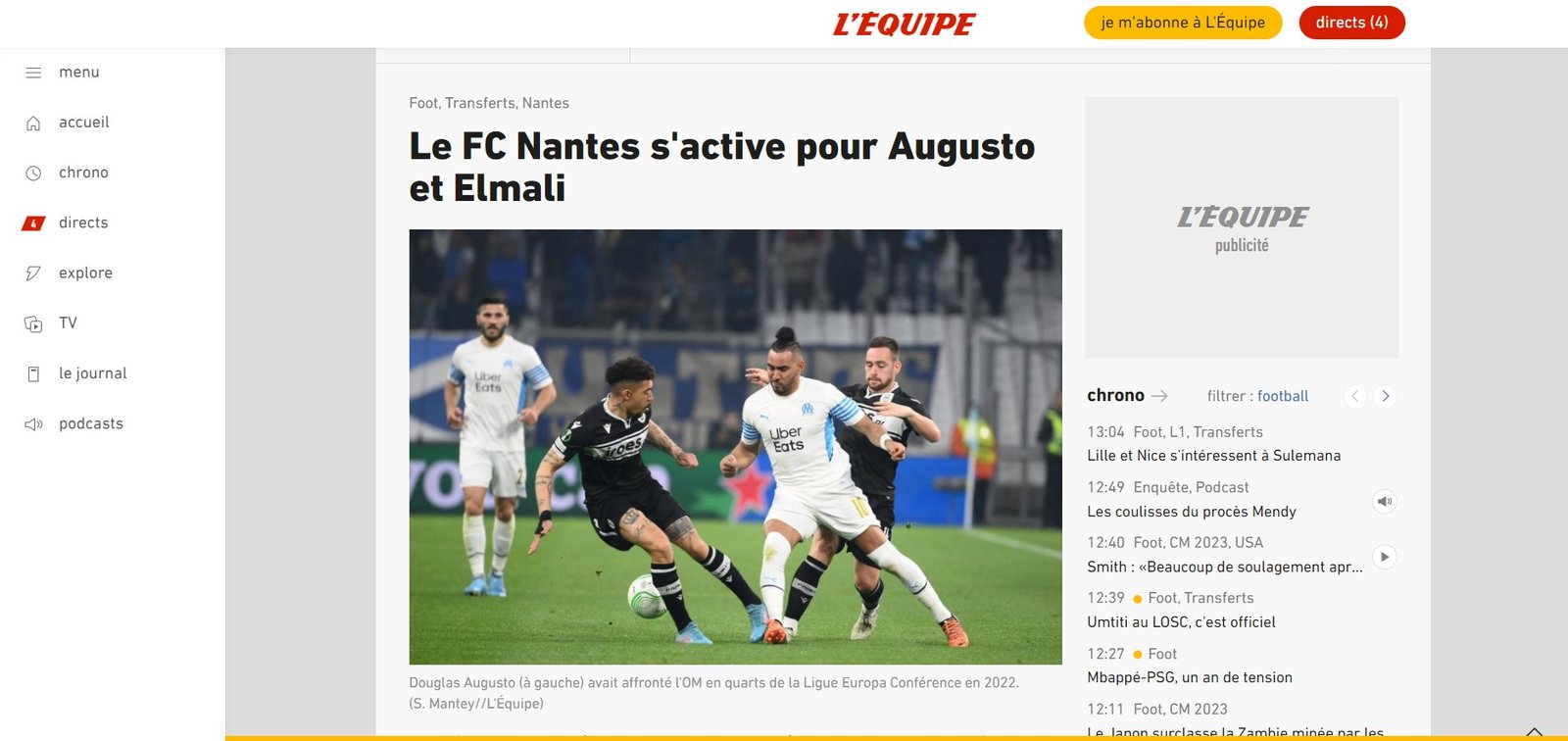 Συγκεκριμένα η “L’equipe” γράφει στο ρεπορτάζ της: “Έχουν ξεκινήσει διαπραγματεύσεις με τον ΠΑΟΚ Θεσσαλονίκης για την απόκτηση του Ντάγκλας Αυγούστο. Ο 26χρονος Βραζιλιάνος μέσος, που προήλθε από τις Κορίνθιανς και τη Φλουμινένσε, παίζει στην Ευρώπη από το 2019. Έχει ήδη συμφωνήσει με την ομάδα του FC Ναντ για ένα συμβόλαιο διάρκειας τεσσάρων ετών. Οι συζητήσεις μεταξύ των δύο ομάδων συνεχίζονται, ενώ ο ΠΑΟΚ αναφέρεται να ζητά 7 εκατομμύρια ευρώ για να παραχωρήσει τον παίκτη του, ο οποίος έχει συμβόλαιο μέχρι τον Ιούνιο του 2026”.