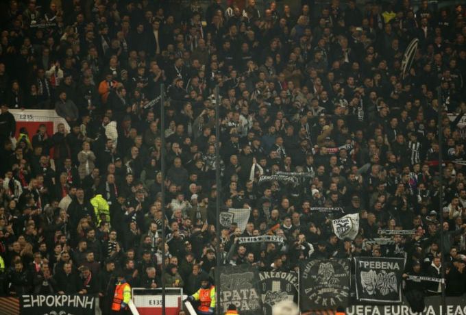Ο ΠΑΟΚ δημιούργησε εκρηκτική ατμόσφαιρα στο Old Trafford, με πάνω από 6.000 οπαδούς του να δίνουν έντονη παρουσία και να εντυπωσιάζουν τους Άγγλους. Από το βράδυ της Τετάρτης, οι φίλοι του ΠΑΟΚ «ζωντάνεψαν» το Μάντσεστερ με συνθήματα, μετατρέποντας την πόλη σε μια μικρή «Τούμπα».
