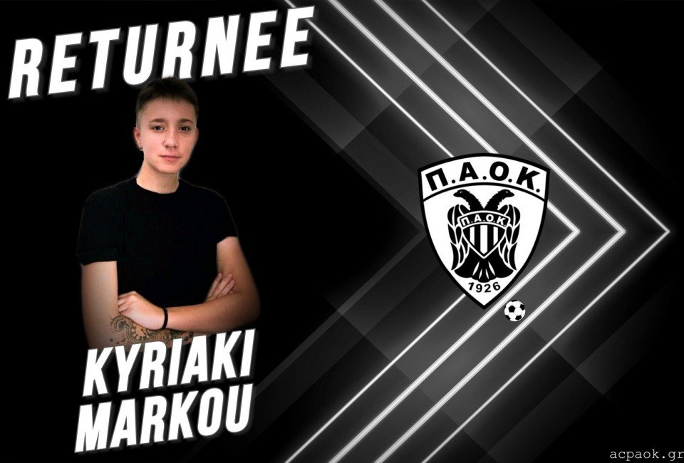 Ο ΠΑΟΚ και το τμήμα ποδοσφαίρου γυναικών του Συλλόγου μας, ανακοινώνουν την επιστροφή της Κυριακής Μάρκου, για την αγωνιστική περίοδο 2020-21, έπειτα από τον δανεισμό της.