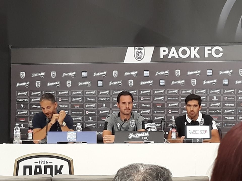 Για τις μεταγραφές και τα λάθη των παικτών του στο ματς: «Για να ξεκινήσουμε αντίθετα όσον αφορά το 2ο σκέλος της ερώτησης, δεν θα ήθελα να αναφερθώ συγκεκριμένα σε μεταγραφές, σε θέσεις, έχω γίνει ξεκάθαρος σε αυτό το ζήτημα. Αυτό που εγώ θέλω είναι να έχω 20 +3 παίκτες νέους παίκτες και δυο ισάξιους ποδοσφαιριστές σε κάθε θέση έτσι ώστε να μπορέσουμε να βελτιωθούμε ατομικά και ομαδικά. Εγώ υπολογίζω και είμαι 100% συγκεντρωμένος στους παίκτες που έχω και έχουν την απόλυτη εμπιστοσύνη μου, από εκεί και πέρα, όποιον κόουτς και να ρωτούσατε αν θέλει να έρθουν καλύτεροι από όσους έχουν, όλοι οι προπονητές θα σας έλεγαν ότι θα θέλανε. Γιατί η αλήθεια είναι, πως μόνο η πίεση και η συνεχής ανταγωνιστικότητα, είναι που βελτιώνει τους πάντες, όχι μόνο τους παίκτες αλλά όλους. Σε όλους τους τομείς, η πίεση και η ανταγωνιστικότητα σε κάνει καλύτερο. Για το πρώτο σκέλος της ερώτησης, είναι αδύνατο στο ποδόσφαιρο να αποφύγεις τα λάθη, η αλήθεια είναι πως συνήθως κερδίζει η ομάδα με τα λιγότερα λάθη, απλώς αυτό που πρέπει να κατανοήσουμε είναι ότι υπάρχουν λάθη τα οποία είναι αβίαστα και κάποια λάθη που σε αναγκάζει να κάνεις ο αντίπαλος. Γι αυτό και χρειάζεται 100% συγκέντρωση σε κάθε στιγμή του παιχνιδιού ώστε να αποφεύγονται λάθη που στοιχίζουν. Εγώ δεν είμαι εναντίον ότι μπορεί να γίνουν και λάθη, είναι φυσιολογικό, δεν νευριάζω όταν ένας παίκτης μου έχει εύκολο γκολ και το χάνει. Και αυτό μπορεί να γίνει ή αν δεν τελειώσει φάση που θα έπρεπε να πετύχει γκολ. Αυτό για το οποίο νευριάζω, είναι όταν δεν βλέπω ποδοσφαιριστές να τρέχουν στο 100% για να γυρίσουν πίσω και να βοηθήσουνε την ομάδα αμυντικά. Θα πρέπει όλοι να παίζουν για την ομάδα, σε οποιαδήποτε θέση και αν αγωνίζεται ο παίκτης, είτε αν αρχίσει ως βασικός είτε αν έρχεται από τον πάγκο. Αυτό το πνεύμα θα ανεβάσει επίπεδο την ομάδα. Το αστέρι είναι η ομάδα, είναι ο ΠΑΟΚ».