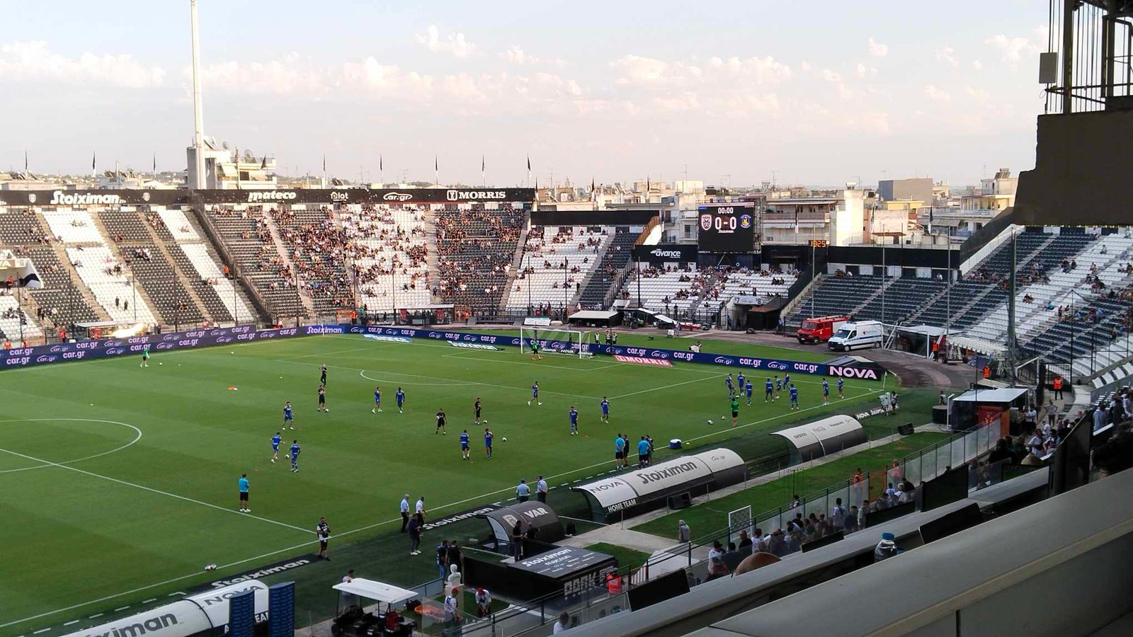 Οι παίκτες του Αστέρα Τρίπολης εδώ και λίγη ώρα έχουν βγει στον αγωνιστικό χώρο της Τούμπας για προθέρμανση πριν την σέντρα της πρεμιέρας των δύο ομάδων στο νέο πρωτάθλημα της Super League.