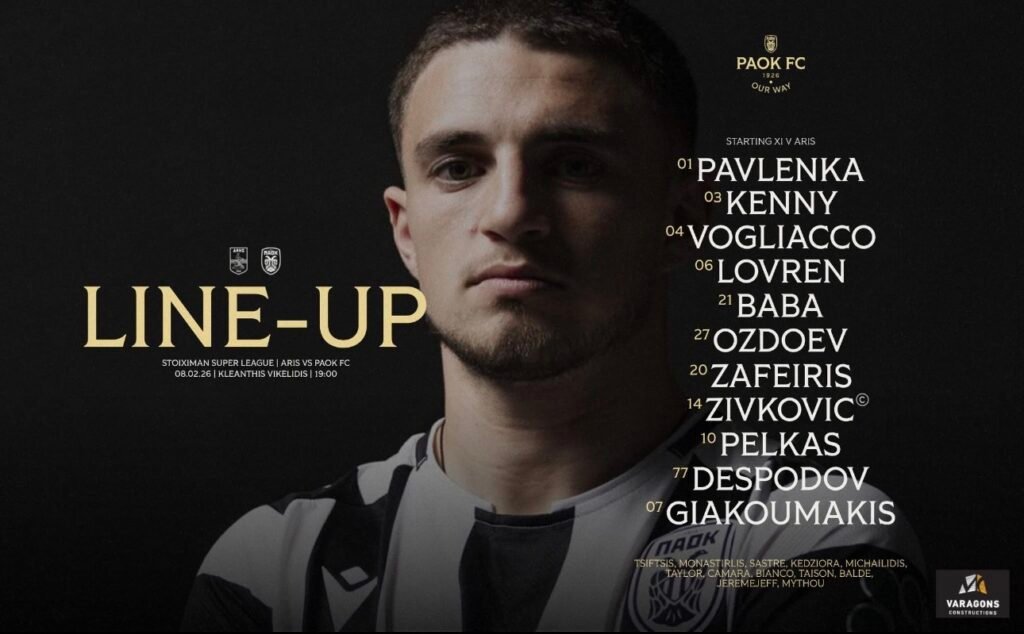 Λίγη ώρα πριν από τη σέντρα του ιδιαίτερα σημαντικού ντέρμπι της 20ής αγωνιστικής της Super League, ο Ράζβαν Λουτσέσκου ανακοίνωσε τις τελικές του επιλογές για την ενδεκάδα του ΠΑΟΚ απέναντι στον Άρη. Ο Ρουμάνος προπονητής κατέληξε σε ένα σχήμα που δίνει έμφαση στην εμπειρία στα μετόπισθεν και στην ένταση και δημιουργικότητα από τη μέση και μπροστά, με ξεκάθαρη πρόθεση να επιβάλει τον ρυθμό από το ξεκίνημα του αγώνα.
