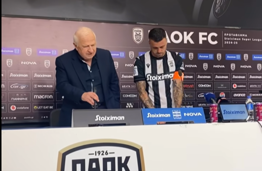 Μια ξεχωριστή και ιδιαίτερα φορτισμένη στιγμή εκτυλίχθηκε κατά τη διάρκεια της αποχαιρετιστήριας συνέντευξης Τύπου του Αντελίνο Βιεϊρίνια, όταν ο Πρόεδρος του Α.Σ. ΠΑΟΚ, Θανάσης Κατσαρής, προχώρησε στην απονομή τιμητικής πλακέτας στον εμβληματικό αρχηγό του ποδοσφαιρικού ΠΑΟΚ.
