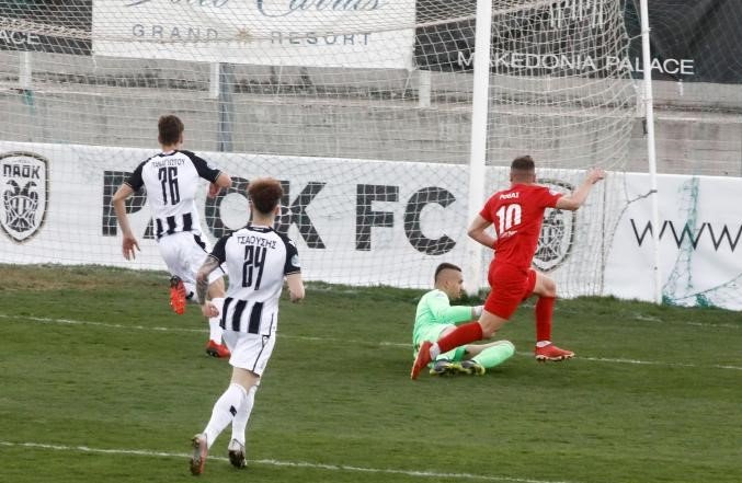 Τη νίκη με 0-1 επί του ΠΑΟΚ Β’ πανηγύρισε ο Αλμωπός Αριδαίας στο γήπεδο του Μακεδονικού, στην Ευκαρπία, για την 28η αγωνιστική της Super League 2.