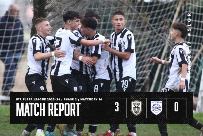 Άνετο το απόγευμα για την Κ17, η οποία επικράτησε 3-0 του ΠΑΣ Γιάννινα στο ματς της 16ης αγωνιστικής της Super League.