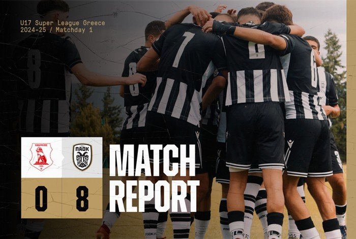 Η Κ17 του ΠΑΟΚ ξεκίνησε εντυπωσιακά τη Super League, επικρατώντας με 8-0 του Πανσερραϊκού στις Σέρρες, σε αγώνα που καθυστέρησε λόγω βροχόπτωσης.
