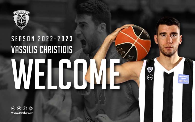 Η ΚΑΕ ΠΑΟΚ εξέδωσε ανακοίνωση με την οποία κάνει γνωστή τη συμφωνία με τον διεθνή Έλληνα φόργουορντ/σέντερ, Βασίλη Χρηστίδη,για την αγωνιστική περίοδο 2022-2023.
