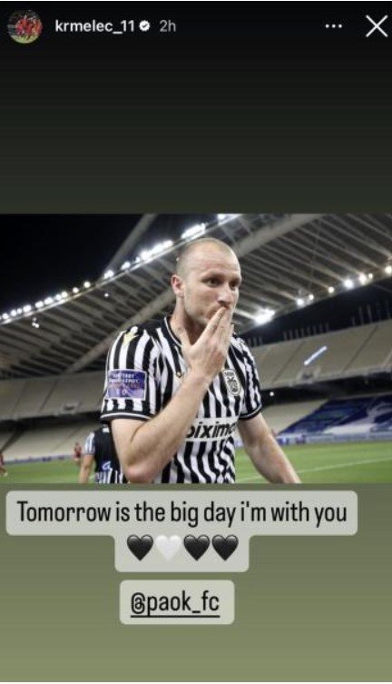 O πρώην επιθετικός του ΠΑΟΚ, Μάικλ Κρμέντσικ μέσα από τον προσωπικό του λογαριασμό στο instagram έστειλε το δικό του μήνυμα ενόψει του τελικού του κυπέλλου Ελλάδος κόντρα στην ΑΕΚ.