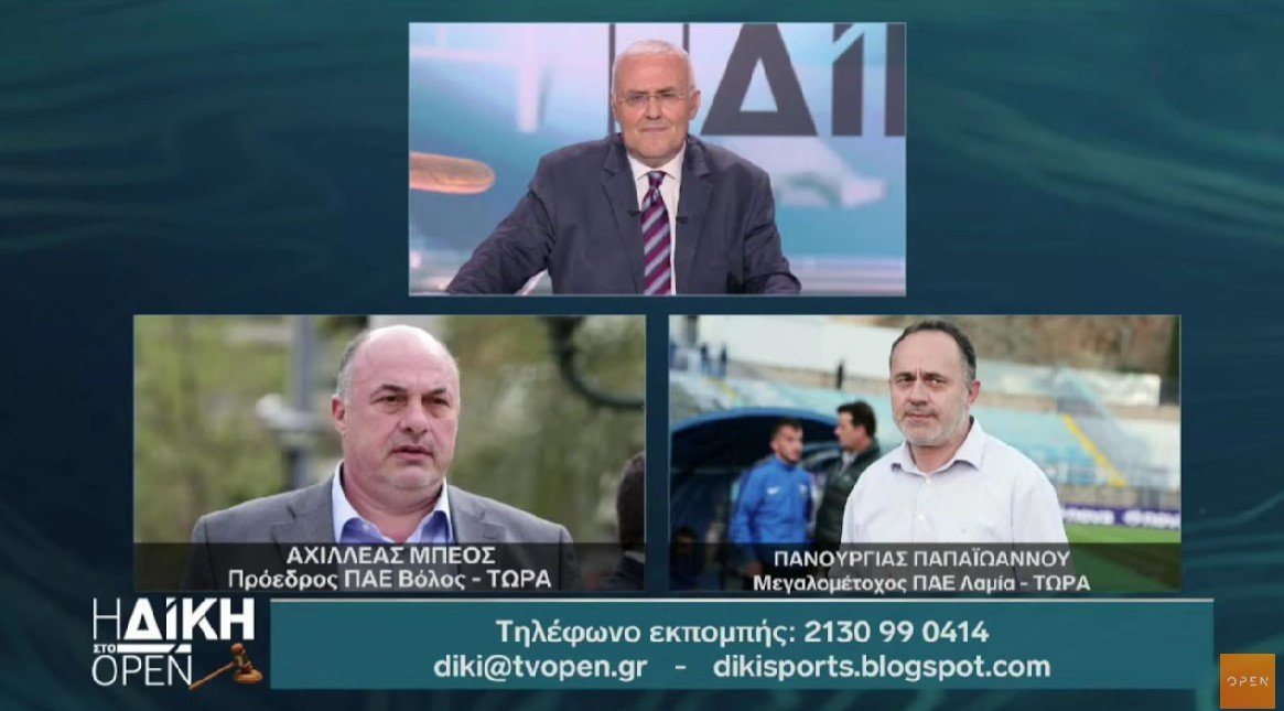 Στη «Δίκη στο Open» φιλοξενήθηκαν ο Αχιλλέας Μπέος και ο Πανουργιάς Παπαϊωάννου και μίλησαν για την καταγγελία στον εισαγγελέα για ανεπιτυχή χειραγώγηση του αγώνα Βόλου-Λαμίας στις 24 Φεβρουαρίου.