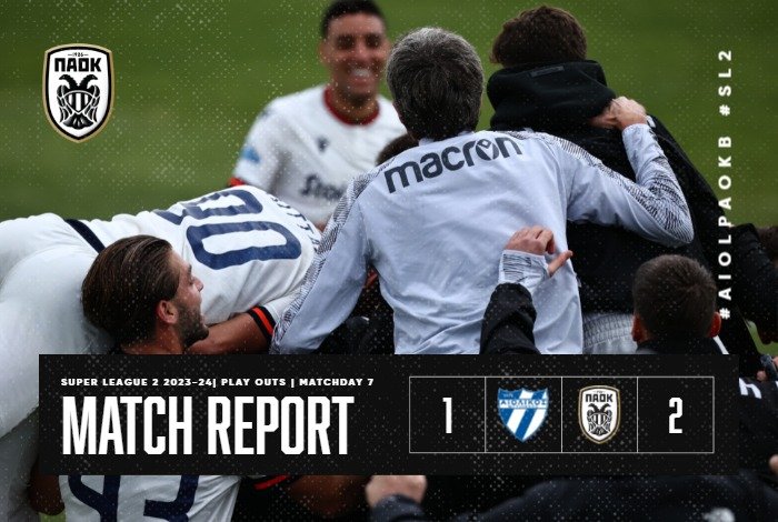 Σημαντική νίκη, με ανατροπή για τον ΠΑΟΚ Β, επί του Αιολικού στην Αριδαία, νίκη που εξασφαλίζει και μαθηματικά την παραμονή στην Super League 2. Και παρότι ναι, “ο ΠΑΟΚ δεν νοείται να πανηγυρίζει παραμονή, ο ΠΑΟΚ είναι μια ομάδα που οφείλει να έχει ανοδική πορεία”, όπως τόνισε κι ο Αλέξης Αλεξιάδης, η προσπάθεια της ομάδας σ’ αυτό το δύσκολο και ιδιόρρυθμο πρωτάθλημα είναι αξιέπαινη.