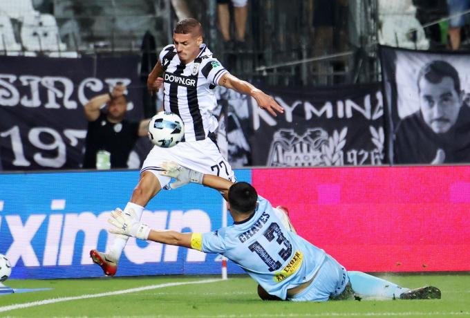 - Στο πέναλτι που γίνεται στον Τάισον, σωστά κλήθηκε ο διαιτητής από τον VAR. Ο Διούδης μπερδεύεται με τον συμπαίκτη του, ο Τάισον μπαίνει σφήνα, βρίσκει την μπάλα και ο Έλληνας κίπερ τον βρίσκει στο πόδι. Παρόμοια φάση με το δεύτερο πέναλτι που πήρε η ΑΕΚ την περασμένη εβδομάδα στην «Λεωφόρο».