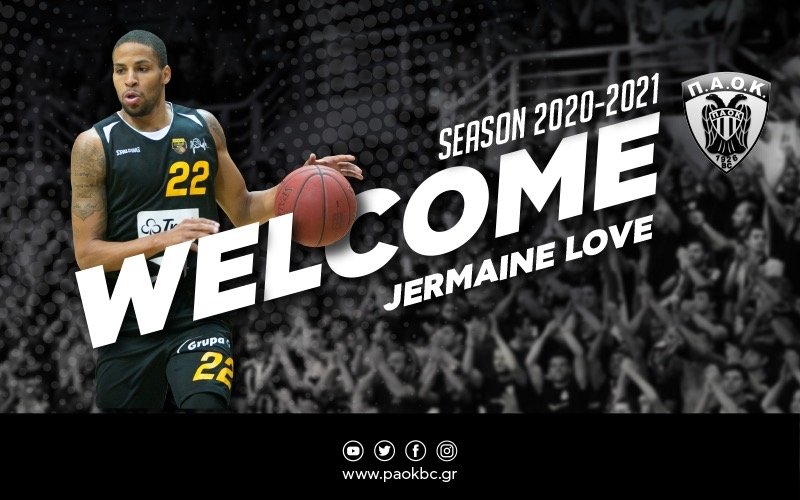 Η ΚΑΕ ΠΑΟΚ ανακοινώνει την συμφωνία με τον Αμερικανό καλαθοσφαιριστή Jermaine Love, ο οποίος θα ενισχύσει την προσπάθεια της ομάδας μας για την αγωνιστική περίοδο 2020-2021.