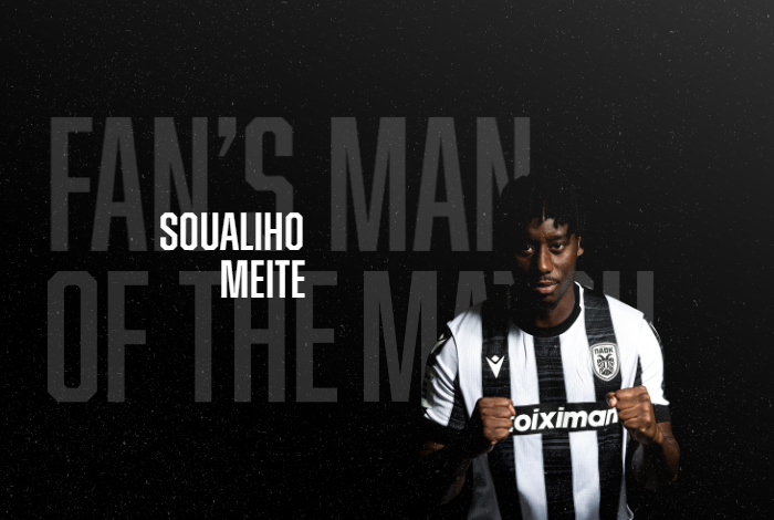 Ο Σουαλιό Μείτέ αναδείχθηκε Fans’ Man of the Match της αναμέτρησης κόντρα στον Ατρόμητο στο Περιστέρι για την 21η αγωνιστική της Stoiximan Super League 2023-24.