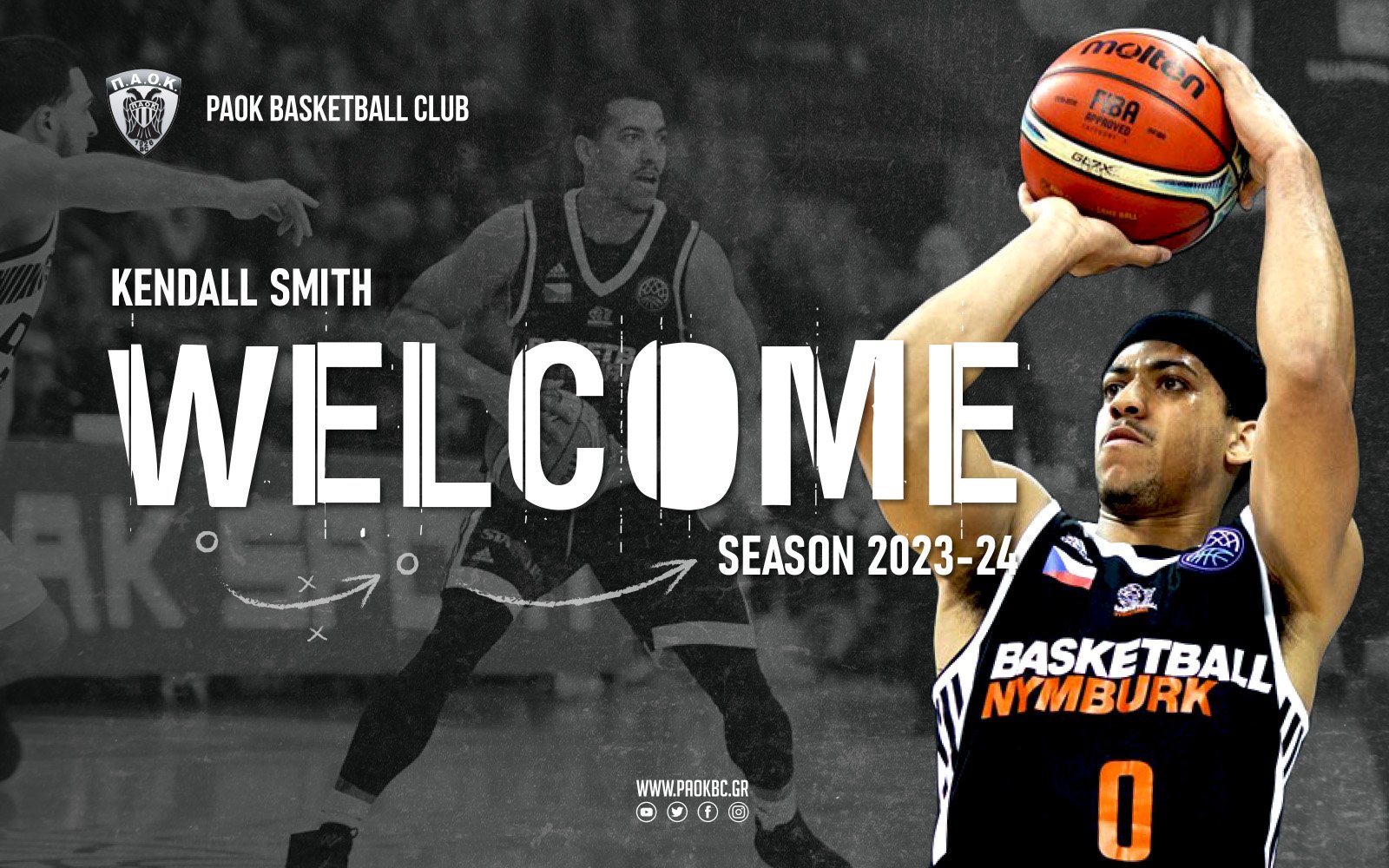 Η ΚΑΕ ΠΑΟΚ mateco ανακοινώνει την συμφωνία με τον Αμερικανό καλαθοσφαιριστή Kendall Smith, ο οποίος αναμένεται απόψε το βράδυ στη Θεσσαλονίκη για να ενσωματωθεί άμεσα με την ομάδα μας και μέχρι το τέλος της αγωνιστικής περιόδου 2023-24.