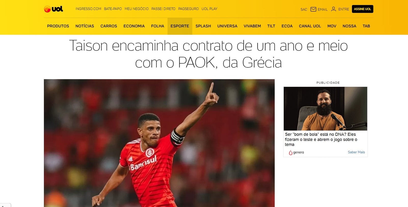 Ο ποδοσφαιριστής έρχεται στην Ελλάδα ως ελεύθερος από την Ιντερνασιονάλ. Σύμφωνα με την ιστοσελίδα uol.com.br από την Βραζιλία μένει να πέσουν μόνο οι υπογραφές.