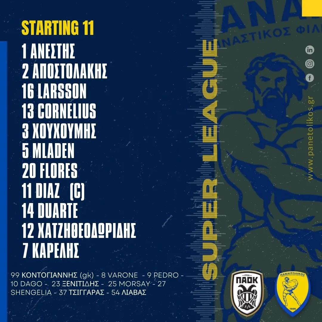Δείτε την ενδεκάδα του Παναιτωλικού:
