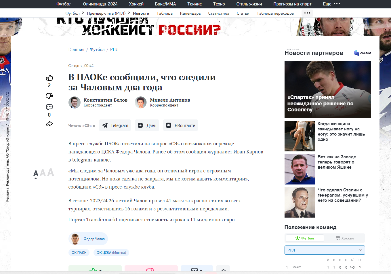 Ο ΠΑΟΚ επιβεβαίωσε παραδέχθηκαν ανοιχτά πως υφίσταται θέμα με τον Φεντόρ Τσαλόφ, φιλοξενείται και σχόλιο από την πλευρά του Δικεφάλου και συγκεκριμένα του γραφείου Τύπου στη ρωσική ιστοσελίδα  «Sport-express».
