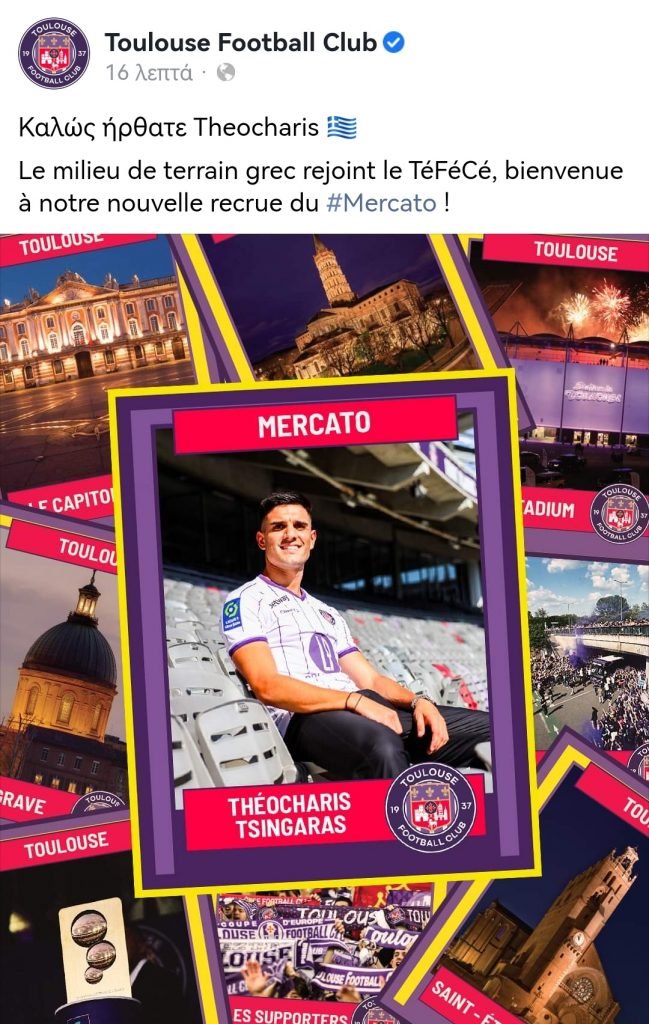 Η ΠΑΕ ΠΑΟΚ ανακοινώνει τη συμφωνία με την Τουλούζ για τον μονοετή δανεισμό του Χάρη Τσιγγάρα, με την γαλλική ομάδα να διατηρεί δικαίωμα αγοράς το καλοκαίρι του 2023