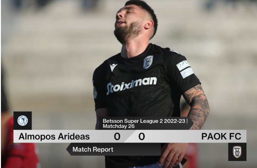 Στο μηδέν … αρκέστηκαν ΠΑΟΚ Β και Αλμωπός Αριδαίας στο παιχνίδι της 26ης αγωνιστικής του πρωταθλήματος της Betsson Super League 2. Όσοι βρέθηκαν στο Δημοτικό στάδιο Αριδαίας, λογικά θα ξεχάσουν γρήγορα την αναμέτρηση, στην οποία καταγράφηκαν κάποιες ελάχιστες φάσεις…