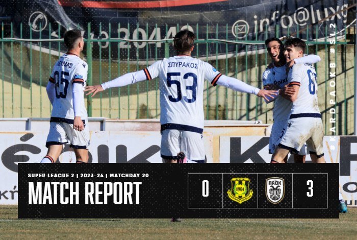 Δεύτερη συνεχόμενη νίκη, κέρδος τριών πολύτιμων βαθμών και συνεχίζουμε… Ο ΠΑΟΚ Β πέρασε με 0-3 από την Καρδίτσα, επικρατώντας της μαχητικής Αναγέννησης στο ματς της 20ής αγωνιστικής της Super League 2.