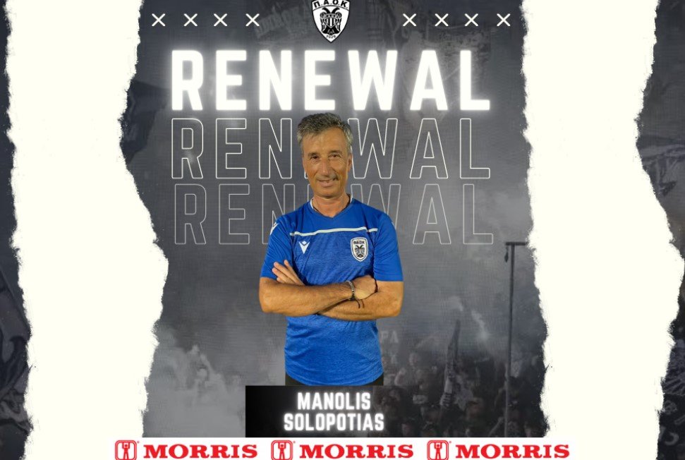 Ο ΠΑΟΚ, και το τμήμα Ποδοσφαίρου γυναικών, ανακοινώνουν την ανανέωση συνεργασίας με τον προπονητή, Μανώλη Σολοποτιά, ο οποίος συνεχίζει και την αγωνιστική περίοδο 2023-2024 στο… τιμόνι του ΠΑΟΚ Β’.