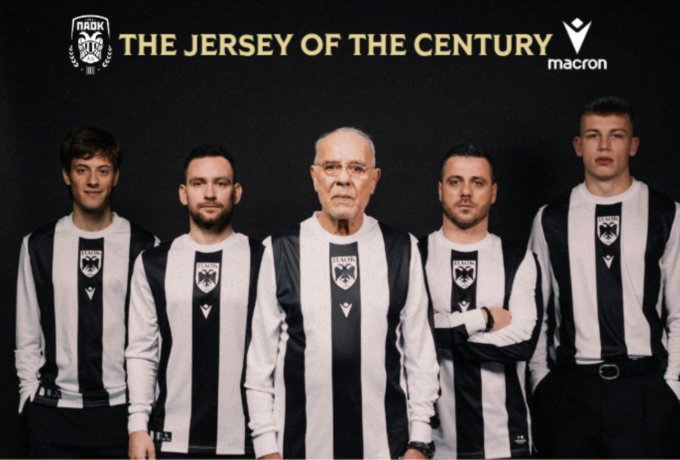 Η ΠΑΟΚ παρουσίασε μέσω βίντεο στα social media την επετειακή φανέλα για τα 100 χρόνια ιστορίας του συλλόγου, σε συνεργασία με τη Macron. Η νέα ασπρόμαυρη εμφάνιση, που παραπέμπει αισθητικά στη φανέλα των επιτυχημένων δεκαετιών 1970-1980, απέσπασε θετικά σχόλια από τους φιλάθλους.