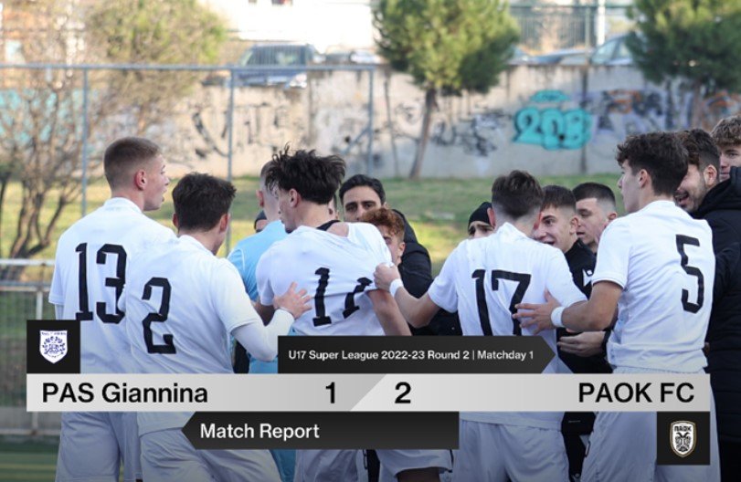 Με εκτός έδρας νίκη έκανε αρχή η Κ17 για το 2023. Ο ΠΑΟΚ κέρδισε 2-1 τον ΠΑΣ στα Ιωάννινα για τον εξ αναβολής αγώνα της 1ης αγωνιστικής της Β φάσης του πρωταθλήματος της Super League.