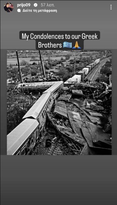 O πρώην επιθετικός του ΠΑΟΚ, Αλεξάντερ Πρίγιοβιτς μέσα από ανάρτηση του στον προσωπικό του λογαριασμό στο instagram έστειλε το δικό του μήνυμα συμπαράστασης για το το μοιραίο σιδηροδρομικό δυστύχημα στα Τέμπη.