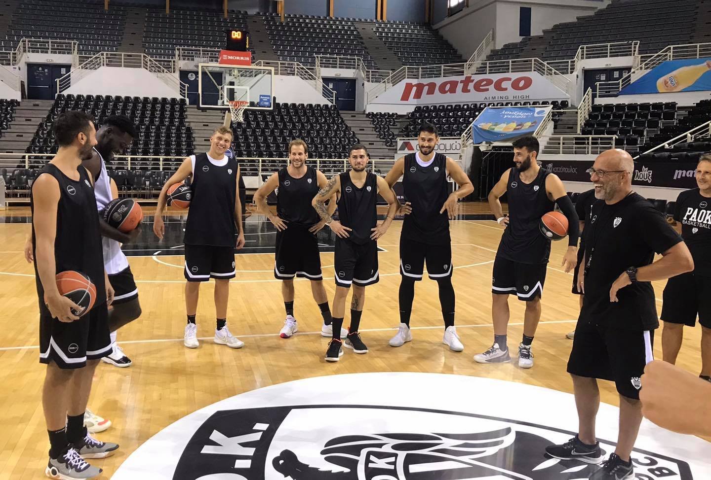 Προπόνηση με χαμόγελα για την ομάδα του ΠΑΟΚ τόσο εντός όσο και εκτός παρκέ παρά το εξαντλητικό πρόγραμμα που δημιούργησε ο Άρης Λυκογιάννης.